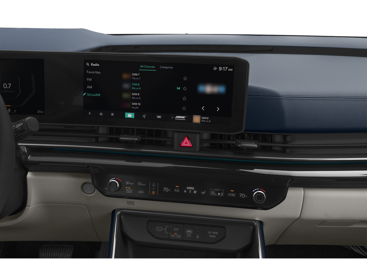 Our SX Prestige cabin helps the whole crew stay comfortable with heated leather power front seats, flexible second/third rows, a heated leather steering wheel, tri-zone automatic climate control, keyless access/ignition, remote start, and terrific technologies. Highlights include Bose audio, a 12.3-inch touchscreen, a 12.3-inch driver display, full-color navigation, WiFi compatibility, wireless Apple CarPlay/Android Auto, voice control, Bluetooth®, and wireless charging.