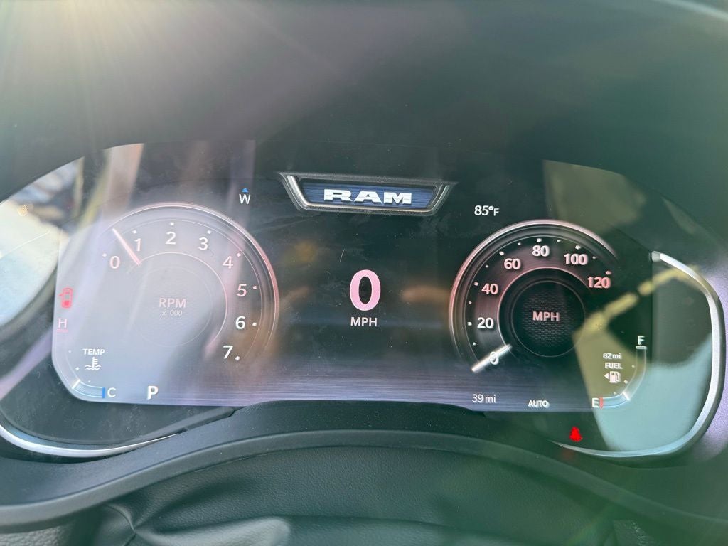 Fall in love with our Big Horn cabin, tailored to fit your needs, with the Level 2 Equipment Package's heated deluxe cloth seats, a heated leather-wrapped steering wheel, universal home remote, power adjustable pedals, power sliding rear window, dual climate control, a RAM Clean-Air System, keyless access, push-button ignition, cruise control, door-sill scuff plates, and clever cargo space, and a Uconnect 5 with 12.0-inch touchscreen features voice control, Bluetooth®, and a nine-speaker sound system for intelligent infotainment.