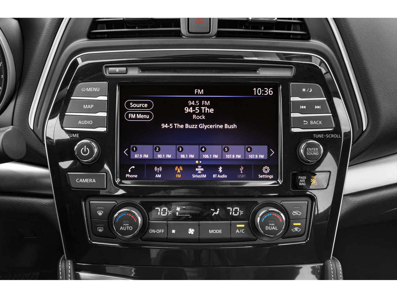 - Radio: AM/FM/CD Audio System -inc: MP3/WMA/AUX reader, 8 speakers, NissanConnect featuring 8" color display w/multi-touch control, Apple CarPlay, Android Auto, 2 front illuminated USB connection ports (1 Type-A, 1 Type-C), Bluetooth hands-free phone system, hands-free text messaging assistant, streaming audio via Bluetooth, voice recognition, Siri Eyes Free, SiriusXM radio, SiriusXM advanced audio features, NissanConnect services powered by SiriusXM, Wi-Fi hotspot, Nissan door to door navigation, SiriusXM Traffic, SiriusXM Travel Link, display commander and 7" Advanced Drive Assist Display (ADAD)