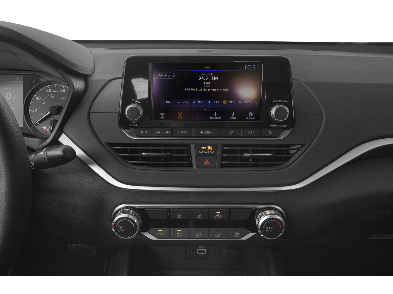 - Radio: AM/FM Audio System -inc: 6 speakers, aux input, 7" color touch-screen display audio system, Bluetooth® hands-free phone system, streaming audio via Bluetooth®, hands-free text messaging assistant, 1 front illuminated USB ports (type-A) for compatible devices, Siri Eyes Free and Google Assistant voice recognition