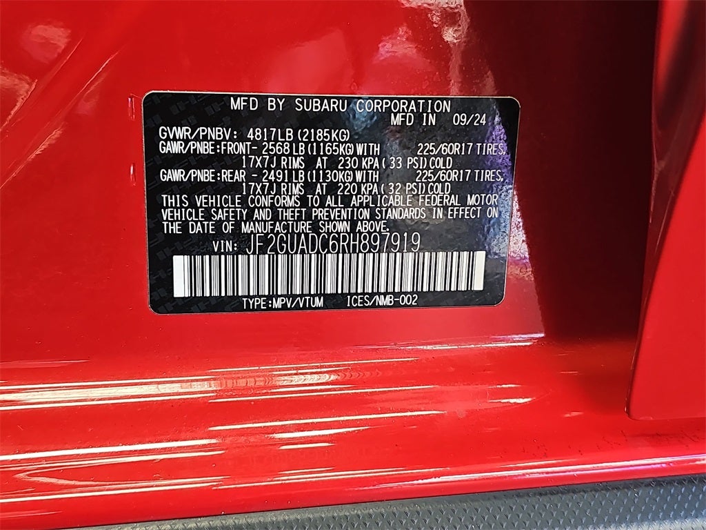 It's time to take a look at our One Owner, Accident Free 2024 Subaru Crosstrek Premium AWD in Lithium Red Pearl! Motivated by a 2.0 Liter BOXER 4 Cylinder providing 152hp to a paddle-shifted CVT for peppy performance. Standard X Mode helps this All Wheel Drive SUV handle the trails, and it scores nearly 34mpg on the highway with bold and sporty good looks. Check out our Crosstrek's adaptive LED headlights, fog lamps, rear roof spoiler, roof rails, alloy wheels, and rugged body cladding.