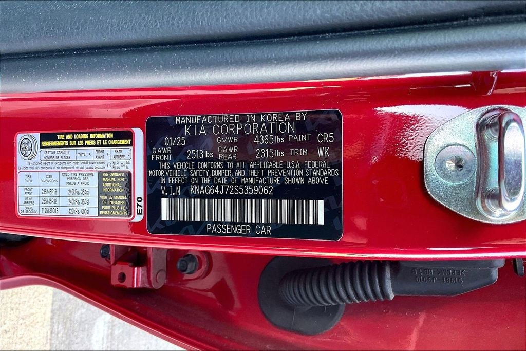 Expressive and exciting, our 2025 Kia K5 GT-Line Sedan is designed for dynamic driving in Runway Red! Powered by a 2.5 Liter 4 Cylinder supplying 191hp to an 8 Speed Automatic transmission with Drive Mode Select. A responsive suspension helps you enjoy athletic handling, and this Front Wheel Drive sedan sees nearly 37mpg on the highway. A fierce appearance comes into the picture with our K5's LED lighting, fog lamps, gloss-black wheels, aggressive GT body styling, a hands-free trunk, a sunroof, and gloss-black mirror caps.